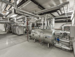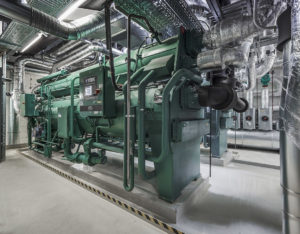 • 2 Absorptionskältemaschinen mit je 400 kW Kühlleistung, gespeist aus der Motorabwärme der BHKW-Anlagen.