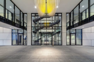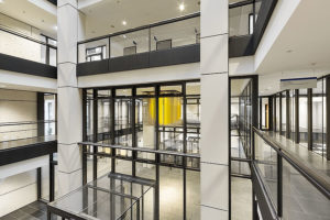 Im EG und im 1.OG sind die öffentlichen Bereiche wie Treffpunkte, Vortrags- und Besprechungsräume und Verwaltung sowie der Ver-/Entsorgungsbereich die die Core-Facilities realisiert worden.